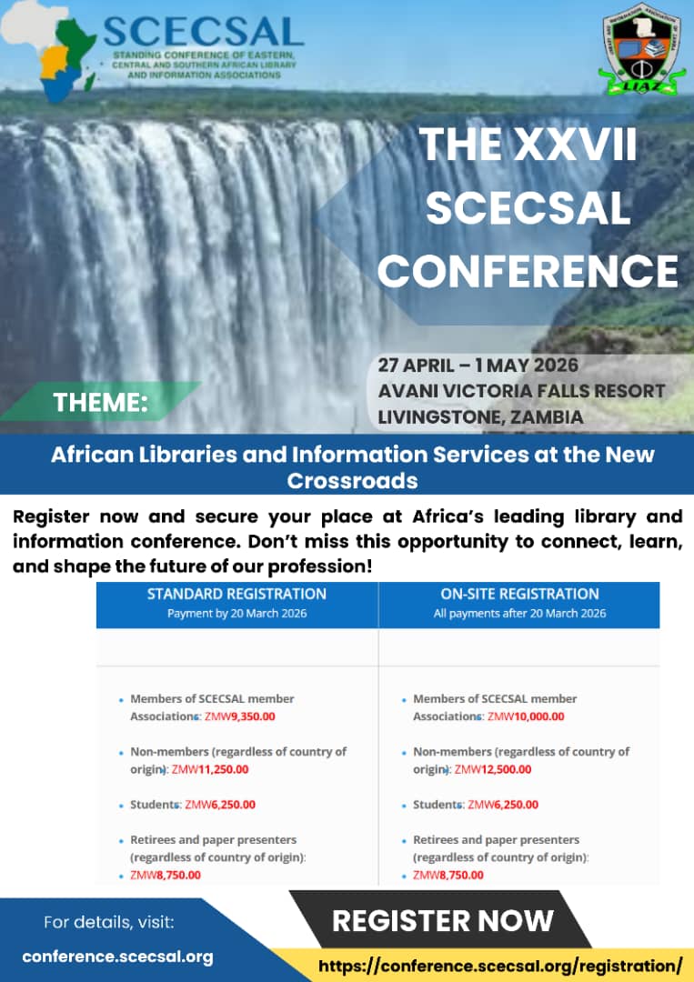 Don’t miss this opportunity to connect, learn, and contribute to shaping the future of library and information services in Africa at this important event in Livingstone.
